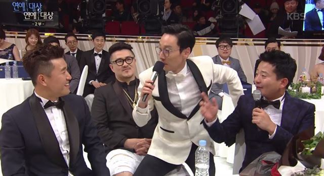점퍼를 입고 시상식에 참여한 성동일에게 배우가 맞느냐 라는 질문을 하기도 하고 아이유에게 배우 이준기와의 사이를 계속 의심하겠다라는 상황에 맞지 않는 개그 욕심을 부려서 질타를 받은 것입니다.