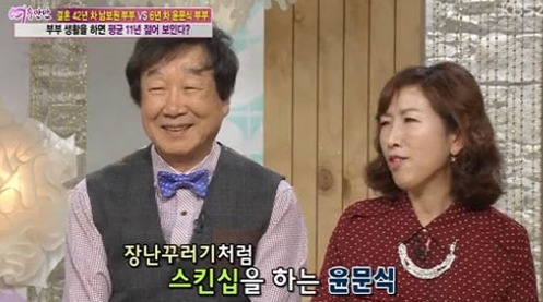 두 사람은 동거부터 먼저 시작을 했고, 재혼을 하게 되는데요. 2011년 결혼식을 올리게 됩니다. 윤문식 장인은 윤문식보다 12살 연상, 장모는 4살 연상이라고 하네요.