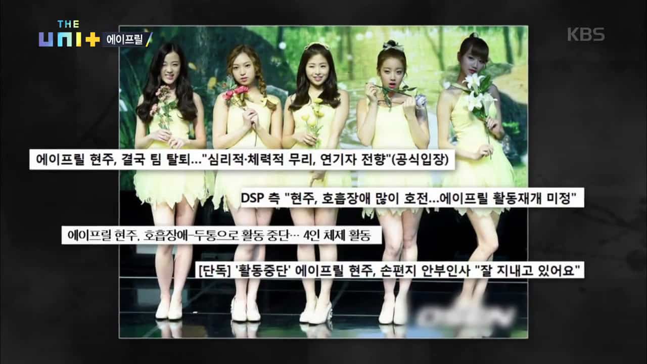 2015년 에이프릴 멤버로 데비한 이현주는 이듬해 10월 "가수 활동과 함께 연기자로서도 팬 여러분 앞에 서고 싶은 저 나름의 욕심과 의지가 있었고 그 꿈을 향해 열심히 노력해보려고 했다. 하지만 두 가지 활동을 준비하기엔 제 스스로가 심리적으로 나 체력적으로 무리가있다"며 에이프릴을 탈퇴했습니다.