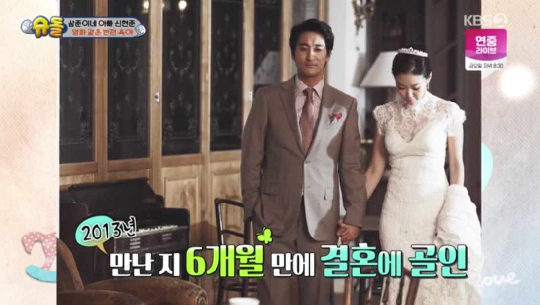 그렇게 만나게 되면서 연인으로 발전 2주가 지났을 때 결혼 이야기가 오고 갔다고 하는데요. 당시 결혼에 대한 환상이 없었던 신현준은 아내 김경미 씨를 보고 첫눈에 반해 결혼을 결심, 6개월 만인 2013년 5월에 결혼식을 올렸다고 하는군요.