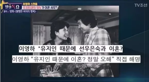 과거 여러 매체를 통해 선우은숙은 이혼의 결정적인 이혼에 대해 이영하의 동료 여배우 때문이라고 공개해 놀라움을 주기도 했습니다.