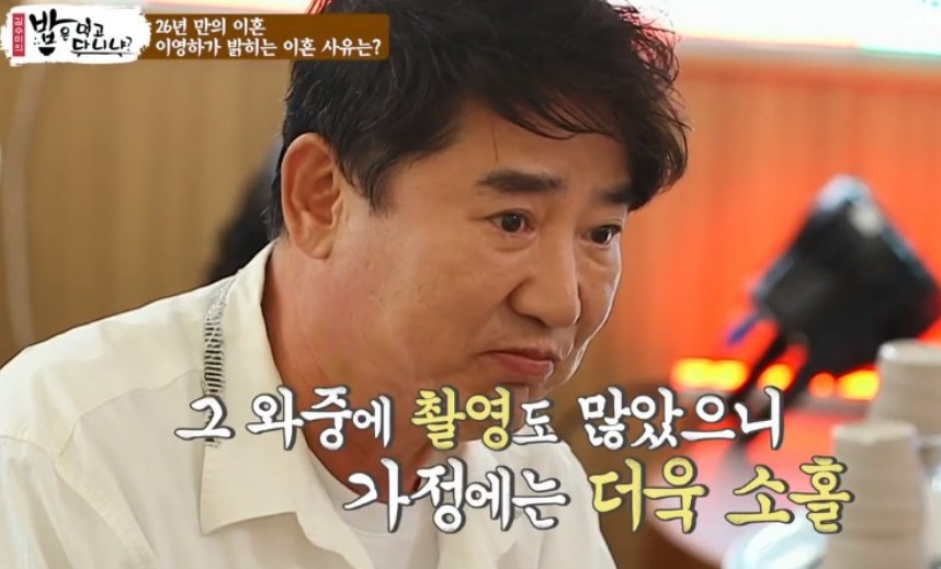 이영하는 예능 프로 '밥은 먹고 다니냐?"에 출연해 이혼 사유에 대해 성격차이라고 전했습니다.