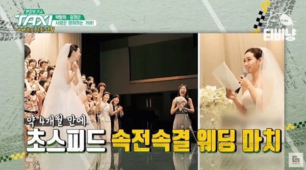 그리곤 이때 만남을 가지면서 박탐희는 자존심이 상해 내가 갖고 말아야겠다는 생각을 하게 되죠. 그리하여 두 사람은 연인 사이로 발전하게 되었는데 당시 32살이었던 박탐희는 결혼을 너무 하고 싶었으나, 그에 반면 결혼할 마음을 보이긴 했지만 결혼에 있어 너무 신중했던 남편의 모습에 박탐희는"할 거면 하고, 아님 말고"라며 적극적인 의사표현을 하게 됩니다.