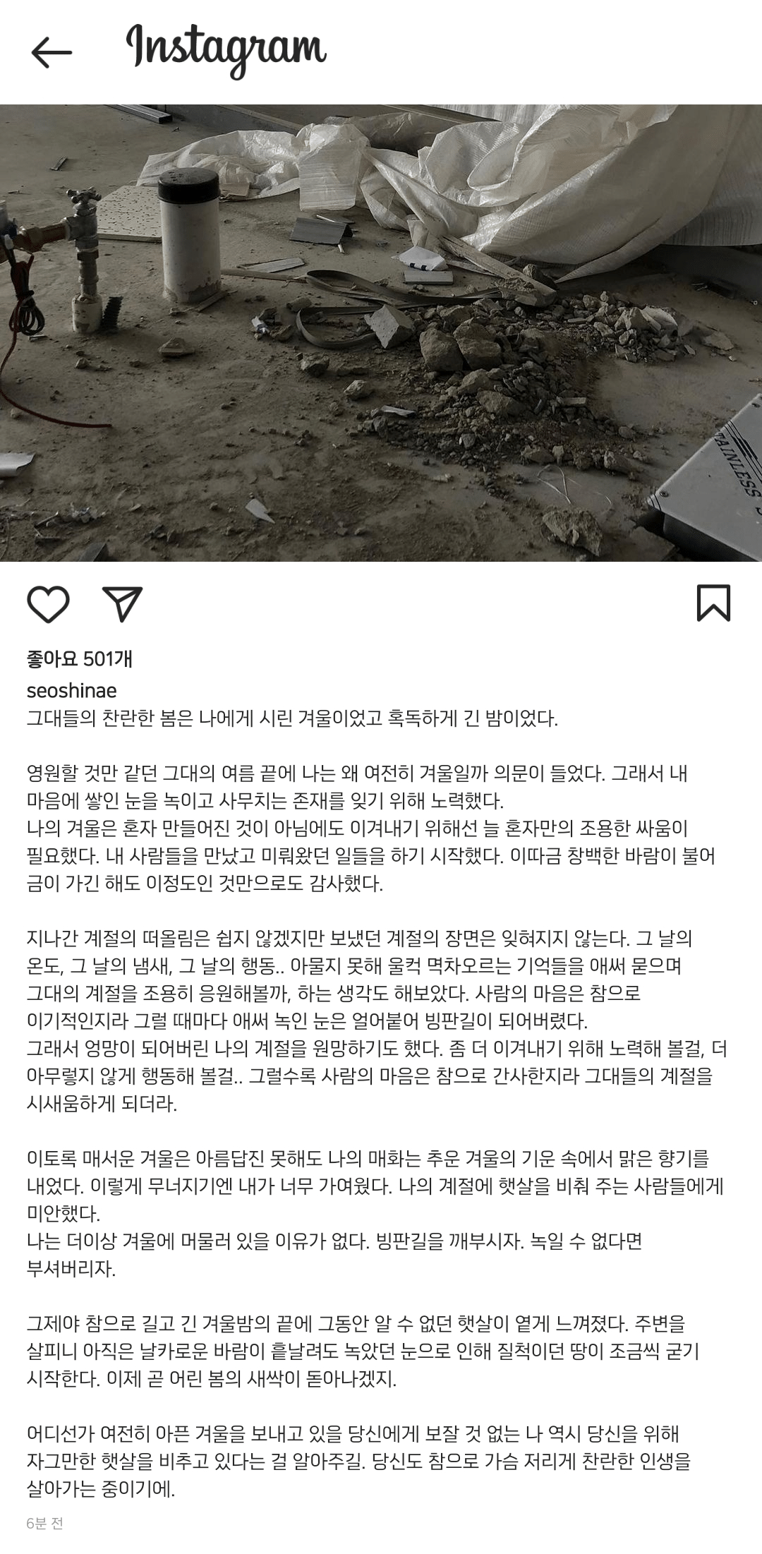 그러나 서신애는 SNS를 통해 의미심장한 게시물을 남겼는데요, 일각에서는 서신애가 수진에게 학폭당한 것을 암묵적으로 인정한 것이 아니냐고 추측했습니다.