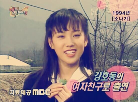 1994년에는 서울예술대학 방송연예과에 입학하고 이후 MBC <오늘은 좋은 날>의 코너인 '소나기'에 강호동의 여자친구역으로 나와 얼굴을 알리게 되었습니다.