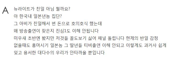 홍진영이 나쁘다는것이 아니라 나라를 위해서라도 뉴라이트는 안된다는 것입니다.