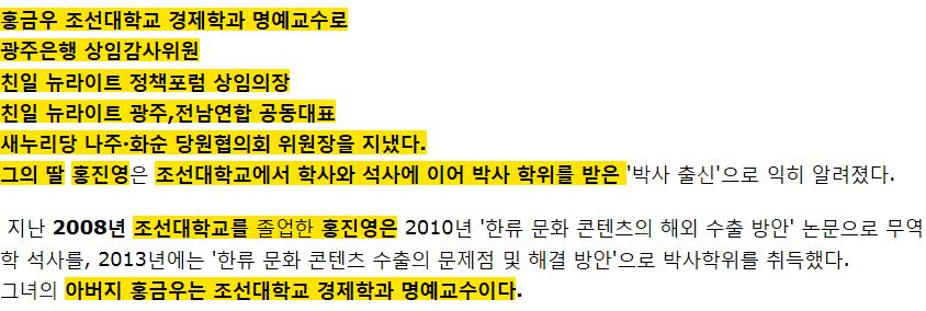 조선대학교 교수인 아빠로 인해 쉽게 얻은 것이라는 의혹까지 받고 있죠.