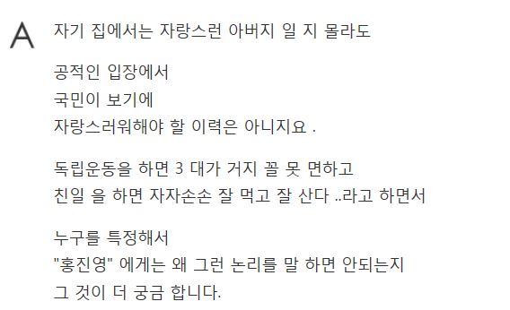 홍진영의 아빠가 뉴라이트인 것이지 홍진영이 잘못한거는 없습니다.