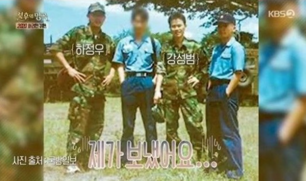 강성범은 군 복무를 국군 홍보 관리소에서 했다고 하는데요. 당시 동기 중에 배우 하정우가 있었다고 합니다.
