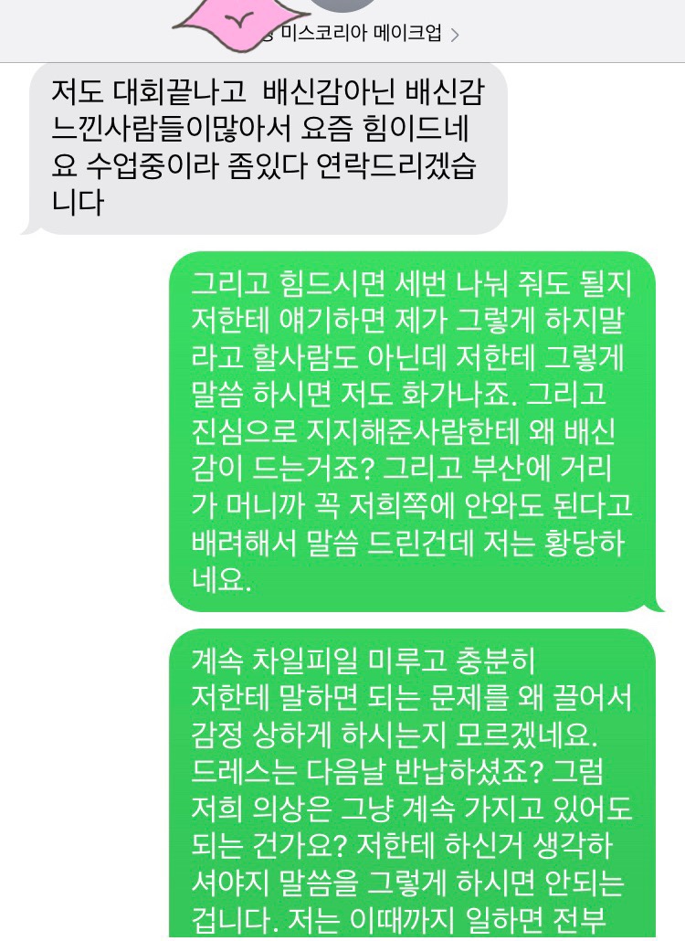 창원과 부산 지역에서 방송국을 중심으로 메이크업과 헤어 분장 일을 10년째 하고 있다는 작성자 A 씨는 "아나운서 B 씨에게 미스코리아 대회 출전 명목으로 수차례 메이크업과 헤어를 해드린 후 돈을 한 푼도 받지 못했다"고 주장했습니다.