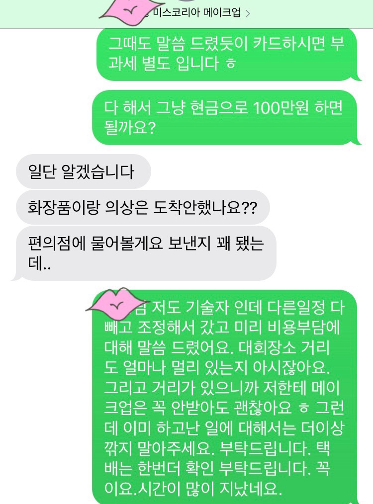 B 아나운서는 제주 미스코리아 대회 참가 때부터 A 씨에게 메이크업을 받았다고 하는데요, 당시 A 씨는 제주도에 비행기를 타고 가야 해서 출장비가 많이 들 거라 미리 고지하였다고 합니다.