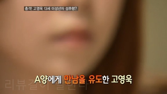 더군다나, 성폭력 고소를 당하고 겨우 고소취하로 구속을 면하고, 몇일 안가 자숙기간중에 저런 미성년자 추행을 또 했다는 것, 연예계에 무수히 많은 고영욱의 나이어린 연예인과 일반인들을 가리지 않는 병적인 작업이력등으로 볼때 도저히 용서받기 힘들다고 보여집니다. 일부 네티즌들은 고영욱에게 화학적 거세를 하라고까지 하는 지경입니다.