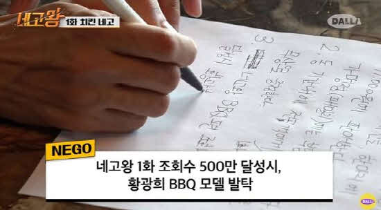 그리고 한 달 만에 그 영상 즉 네고왕 1회 영상이 조회수 5백만을 돌파하였고 광희는 공약대로 BBQ 모델 광고를 찍게 되었습니다. 말 한 마디로 계약을 하게 된 것입니다. 물론 광고 계약 즉 공약 자체는 광희가 직접 만들어낸 것일 수도 있지만 사실 전체적은 프레임을 보았을 때에 BBQ 회장과 만나기 이전에 네고왕 제작진과 BBQ 실무진과 어느 정도는 합의가 이뤄졌을 것입니다.