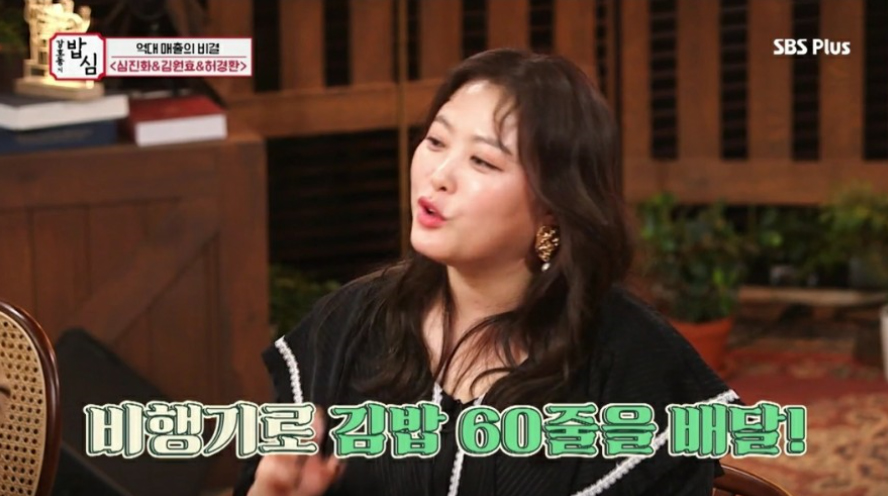 김원효 심진화 부부는 김밥을 특별히 좋아하는 편이라고 하는데요, 제주도 가서 먹었던 김밥이 생각나서 비행기로 김밥 60줄을 배달을 해 먹을 정도라고 합니다.