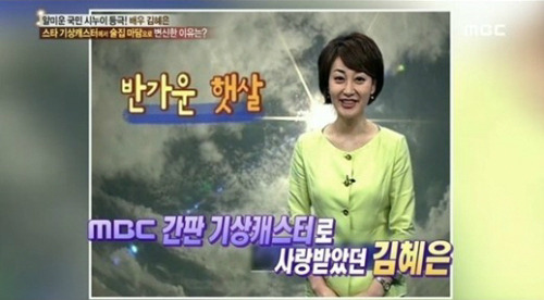 그러다가 서울로 올라와서 기상 캐스터로 활동하게 되죠(김혜은 기상캐스터 시절).