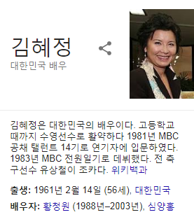 (참고로 김혜정과 심양홍 나이차이는 17살 차이고, 드라마 전원일기에서 심양홍이 김혜정의 친정 아버지로 등장할 정도로 나이차이가 많음)