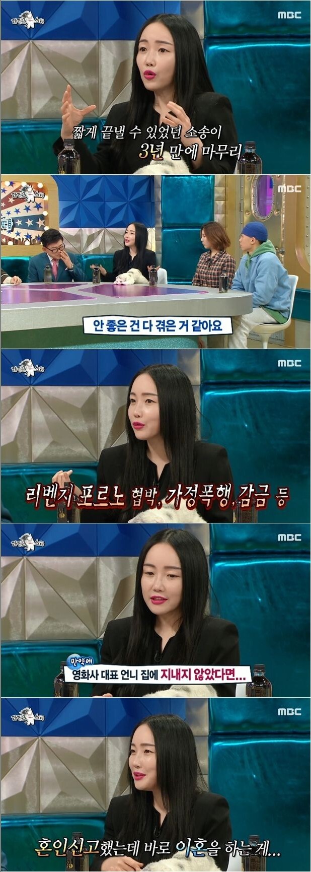 16일 방송된 MBC '라디오스타'에 출연한 낸시랭은 "드디어 제가 3년만에 이혼이 됐다"며 "혼인신고를 10분만에 한 게 이혼하려니 3년이 걸렸다"라고 기뻐했다. 그는 "결론은 100% 저의 승소로, 대한민국 최고 위자료인 5천만원이 나오고 완벽하게 이혼이 됐다"라고 덧붙였다.