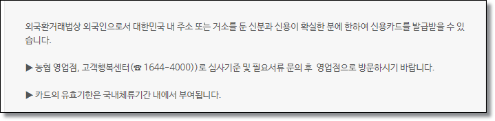 그래서 오늘은 농협 신용카드 발급조건, 나이 몇살부터 가능한지에 대해 자세하게 알아보도록 하겠습니다. 일정 기준만 충족하면 누구나 신청해서 사용할 수 있으니 오늘 포스팅을 참고해 도움 얻으시기 바랍니다.