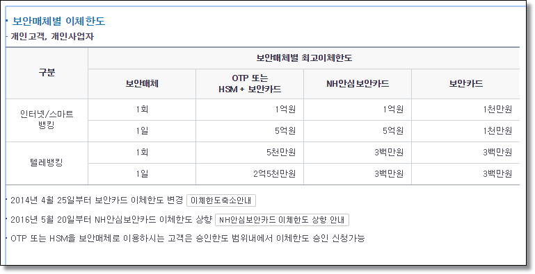 많은 분들이 은행을 이용하고 있습니다. 전 그중에서 농협을 사용하고 있는데요. 인터넷뱅킹을 사용하다보면 이체한도가 초과가 되어 업무를 보지 못하는 경우가 있어, 불편함이 있었습니다.