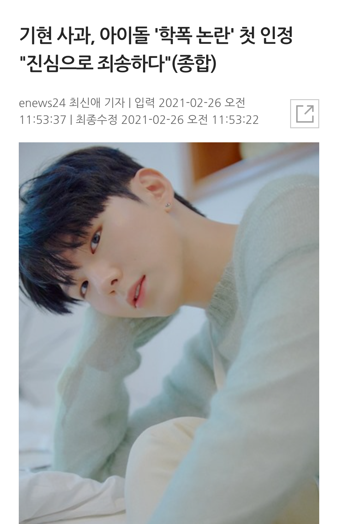 그룹 몬스타엑스 멤버 기현이 학교 폭력 의혹과 관련해 심경글을 게재했습니다.