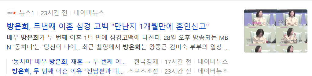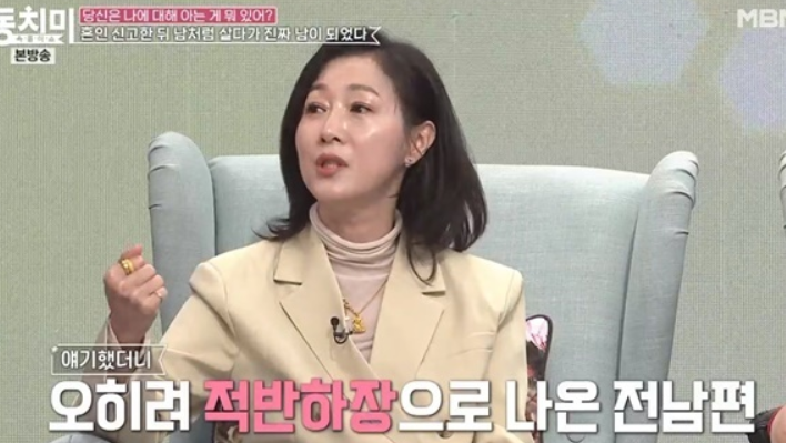 방은희는 속풀이쇼 동치미에서 재혼을 결심하게 된 사연부터 이혼을 결심하게 된 이유까지 상세하게 털어놓았는데요. 부부사이의 일은 당사자 말을 모두 들어봐야 알겠지만 만약 방은희의 말대로라면 결혼을 지속하기 힘들었을 것 같습니다.