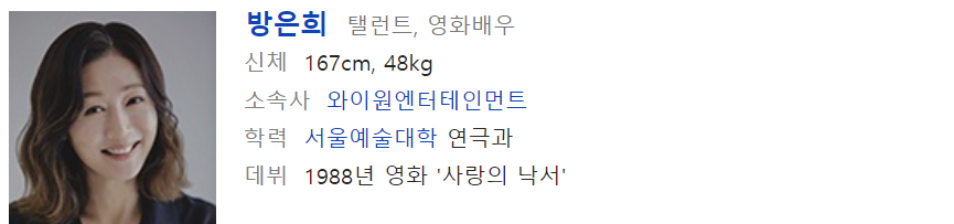 방은희 학력은 서울예술전문대학 연극학과 졸업인데요.
