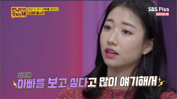 이에 언니들은 가장 고민되는게 무엇인지 물어보았고, 배수진은 "최근에 아이가 아빠를 보고 싶다고 많이 한다. 커서 아빠와 산다고 할까 봐 불안하다."라며 심정을 밝혔습니다.