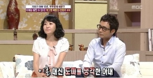 <씬혼 초부터 배동성이 여자문제로 자존심을 상하게 했다. 남편에 대한 신뢰가 깨졌지만, 연예인 이미지에 타격이 갈까 봐 이혼도 못했다. 살기 위해서 아이들과 미국행을 택했다>