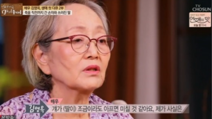 김영옥은 과거 MBN '모던패밀리'에 출연해 자신의 손자에 대한 이야기를 털어놓기도 했는데요. 김영옥의 손자는 음주운전 차에 사고를 당했다고 합니다.