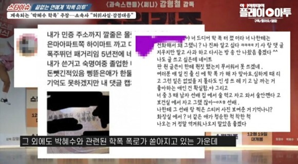 앞서 온라인 커뮤니티 게시판과 SNS 등을 중심으로 박혜수에게 학교 폭력을 당했다고 주장하는 복수의 글들이 게재됐습니다.