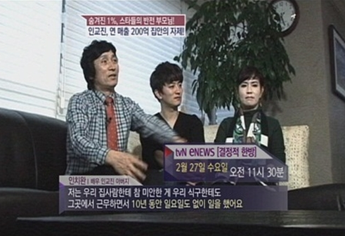 특히 인교진의 반전모습들이 동상이몽 매회 이슈를 몰고 있습니다. 인교진 아버지는 연매출이 200억원 중소기업 CEO이면서 가수가 부업?일 정도로 여러방면에 인교진보다 끼가 많다고 합니다. 인교진 아버지 인치완 회사는 선박선, 전선 케이블 소재 등을 해외로 수출하는 성원산업 CEO로 관련 업체 점유율 1위를 차지할 정도로 건실한 기업이라고 합니다. 건실한 기업 CEO를 아버지로 둔 인교진의 반전집안 이유입니다.