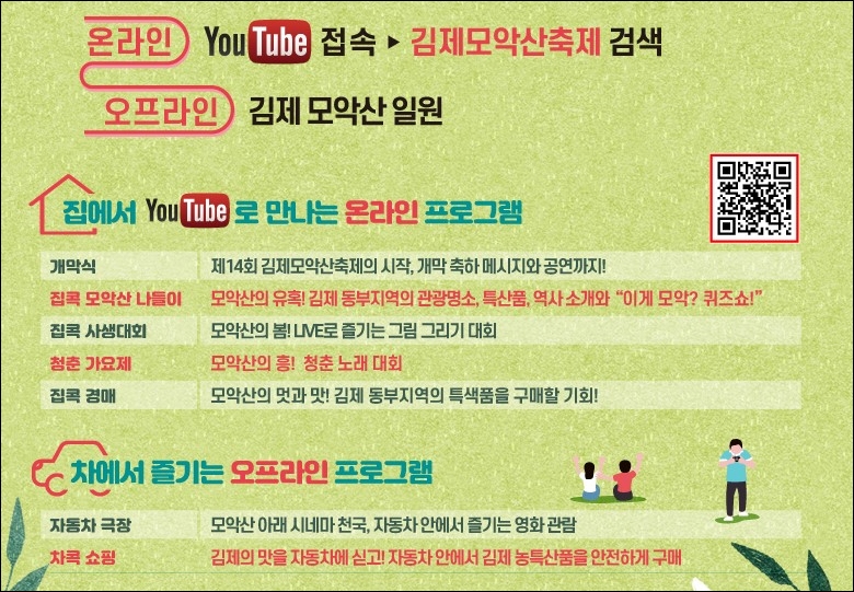4월 9일부터 4월 11일까지 3일에 걸쳐 진행되는 축제입니다. 다른 축제에 비해 행사 기간이 많이 짧으므로 빨리 방문해야 할 것 같네요. 모악산, 상생 / 평화의 길을 걷다는 주제로 진행되어 왔던 축제로 올해로 13 회차라고 합니다. 모악산의 자원을 활용한 콘텐츠 중심의 축제입니다.