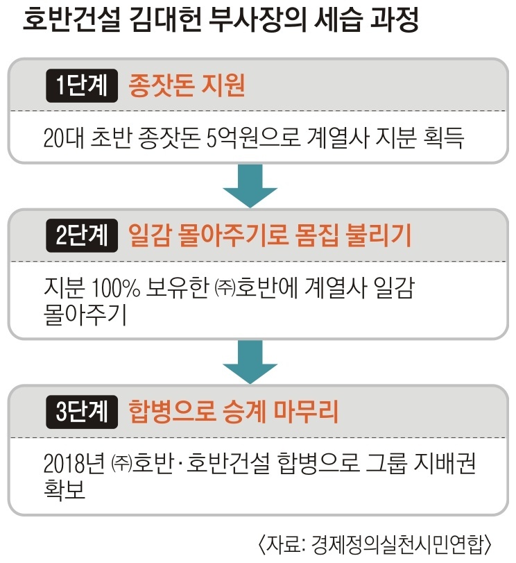 하지만, 서울신문 뉴스보도에 따르면 재계 순위 44위인 호반건설그룹에 대해 ‘재벌의 일그러진 축소판’이라는 비난이 나오고 있는데, 20대에 ‘금수저 종잣돈’으로 발판을 마련하고, 계열사들이 몰아준 일감으로 몸집을 키운 뒤 합병으로 그룹 지배권을 차지한 것이 호반건설그룹과 재벌들의 공통점이다.
