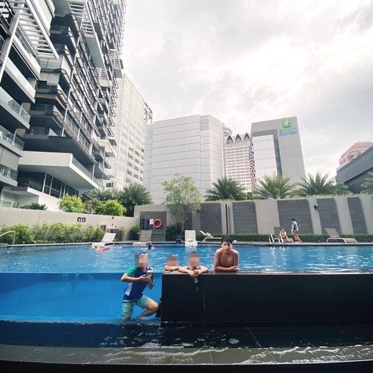 이혜원이 공개한 싱가포르 집의 시티뷰 사진에는 싱가포르 고급 아파트 단지의 모습이 담겼는데요, 대형 수영장을 갖춘 고층의 아파트로 럭셔리한 분위기를 자아냈습니다.