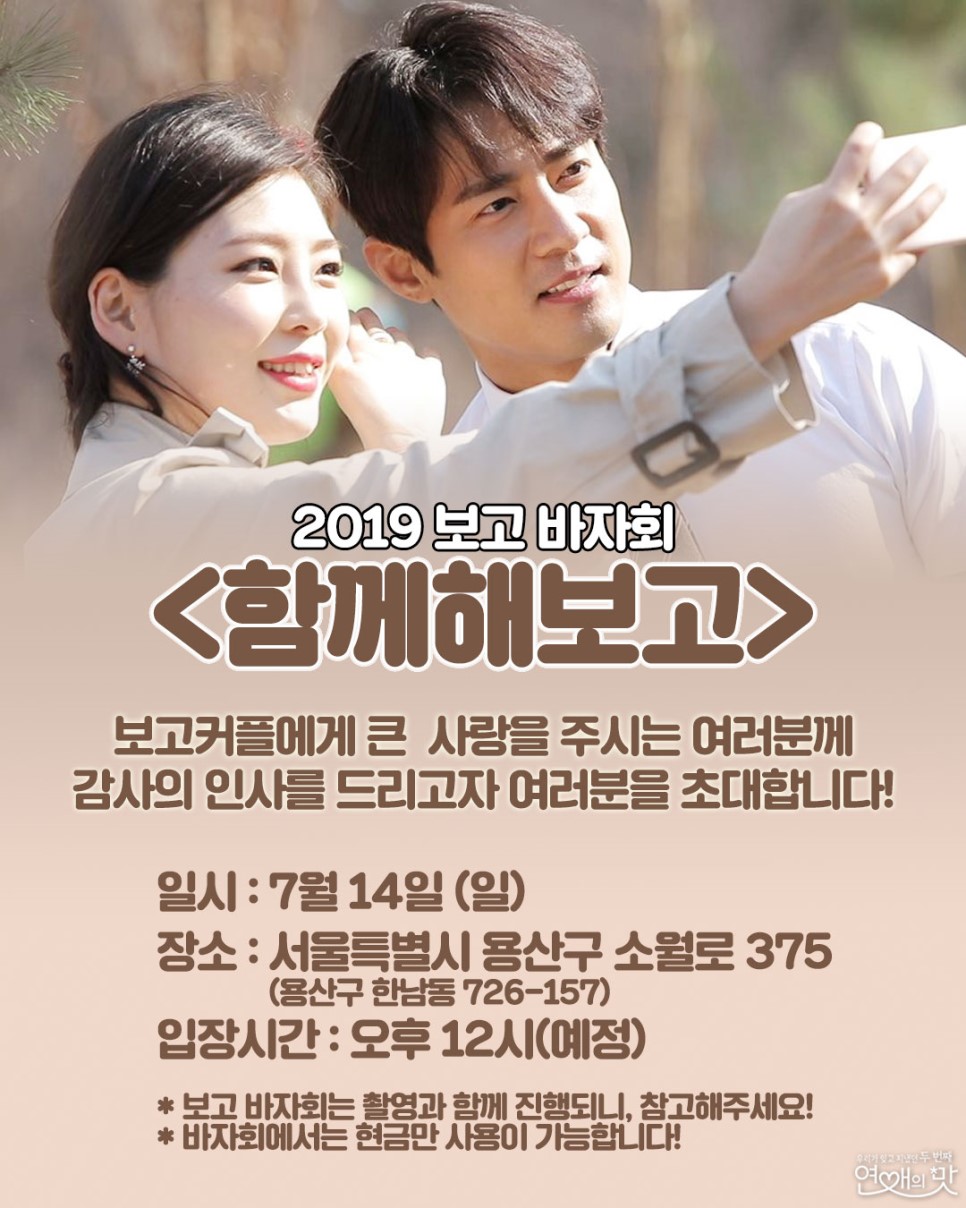 이와 관련해서 오늘밤(8월 8일) 11시 방송되는 ‘연애의 맛’ 시즌2 11회에서는 고주원, 김보미의 ‘보고 바자회:함께해보고’가 진행된 당일 준비과정부터 팬들과의 만남까지 속속들이 방영이 됩니다.