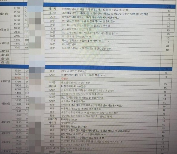 엑셀로 기록했다고 합니다