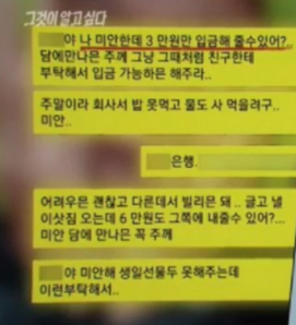 생활고 카톡이 다시 화제가 되고 있죠