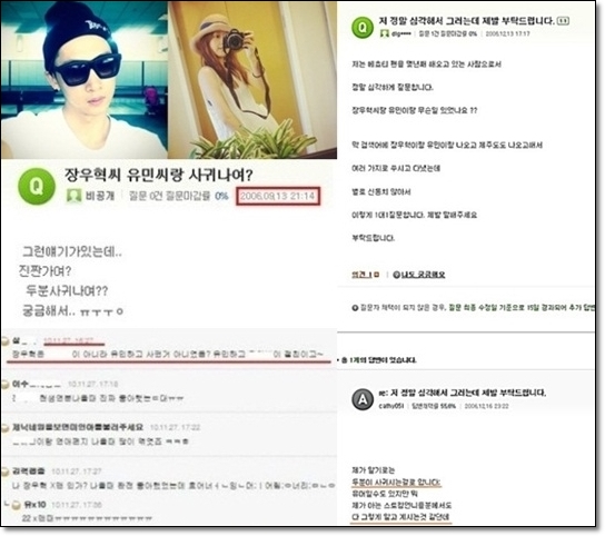 이에 온라인 게시판에는 장우혁 유민의 사이를 궁금해하는 성지글이 등장해 눈길을 끈다. `장우혁 유민 사귀나요?` `장우혁 유민 제주도에서 봤다던데 진짜인가?` `장우혁 유민 사귄다고 하던데...` 등의 글이 게재돼 있습니다.