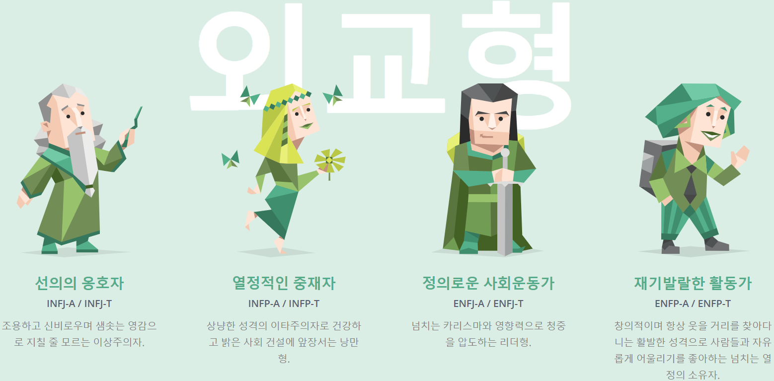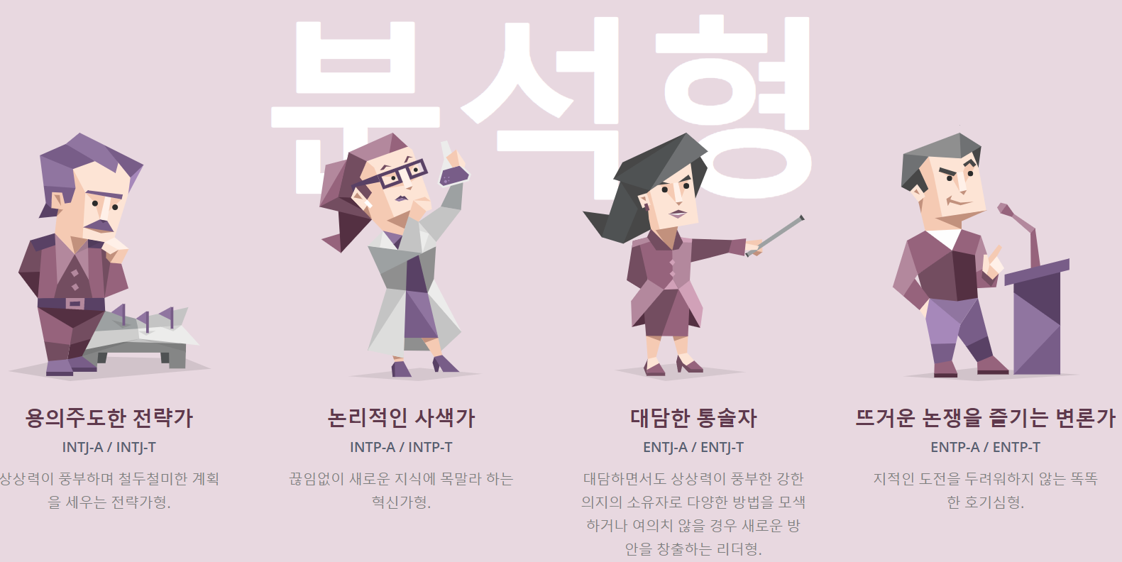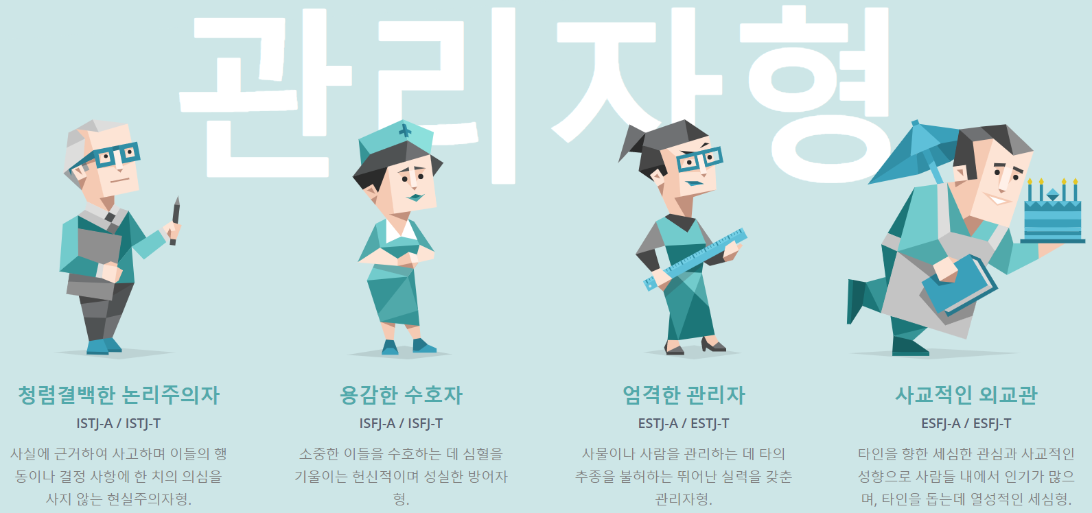 ※ 각각의 유형별 특징은 www.16personalities.com 사이트에서 상세 정보 확인하시기 바랍니다.