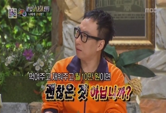 "(군대에서) 먹여주고 재워주고 십만 원주면 괜찮지 않냐?"