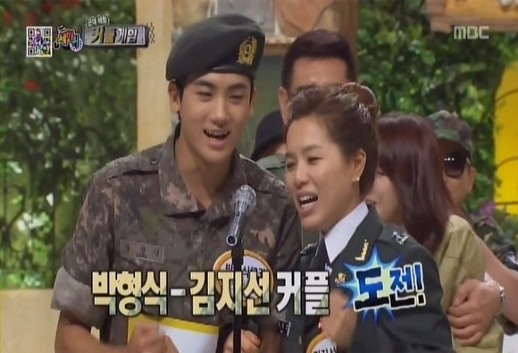 마지막에 조형기 민아 커플이 10초안에 군대 영화 이름 4개를 대면서 이 퀴즈에서 승리를 합니다. 이번에도 조형기는 민아를 덥석 잡네요.