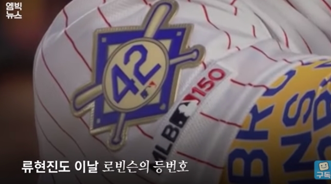 백인들의 전유물이었던 메이저 리그에서 최초의 유색인종이 달았던 번호를 지금은 한국의 류현진이 등에 달고 공을 던지고 있다는 사실이 새삼 피가 뜨거워집니다.