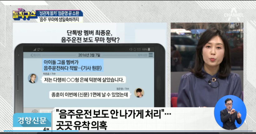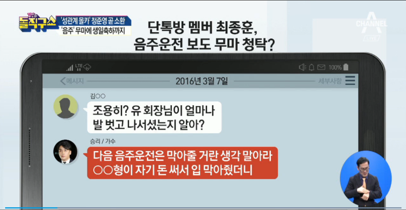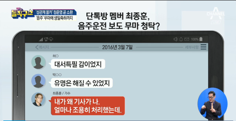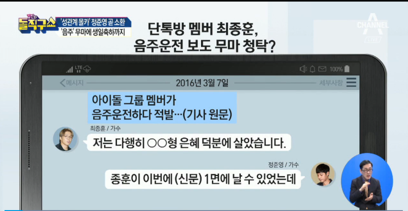 최종훈의 음주사건을 다 알고 있고