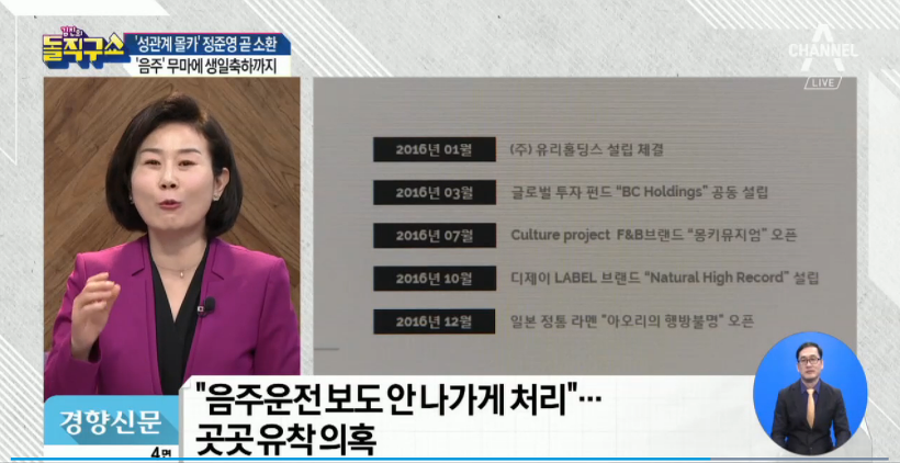 돈을 써서 음주운전보도자료가 안나가게끔 했다고