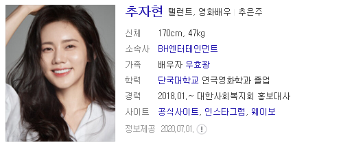 끝으로 우효광과 추자현의 프로필 남겨봅니다
