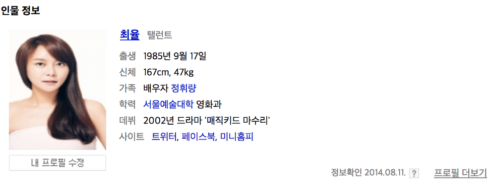 또한 최율은 2013년 농구선수 정휘량과 결혼했습니다.