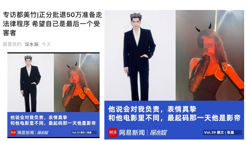 피해자인 두메이주의 폭로내용은 엑소 크리스(우이판)이 캐스팅과 팬미팅을 빌미로 여서 여성들에게 만남을 요구했고 성폭행을 했다고 주장하며 성폭행 피해자가 총 7명이며 최대 10명이넘는다고 하였습니다