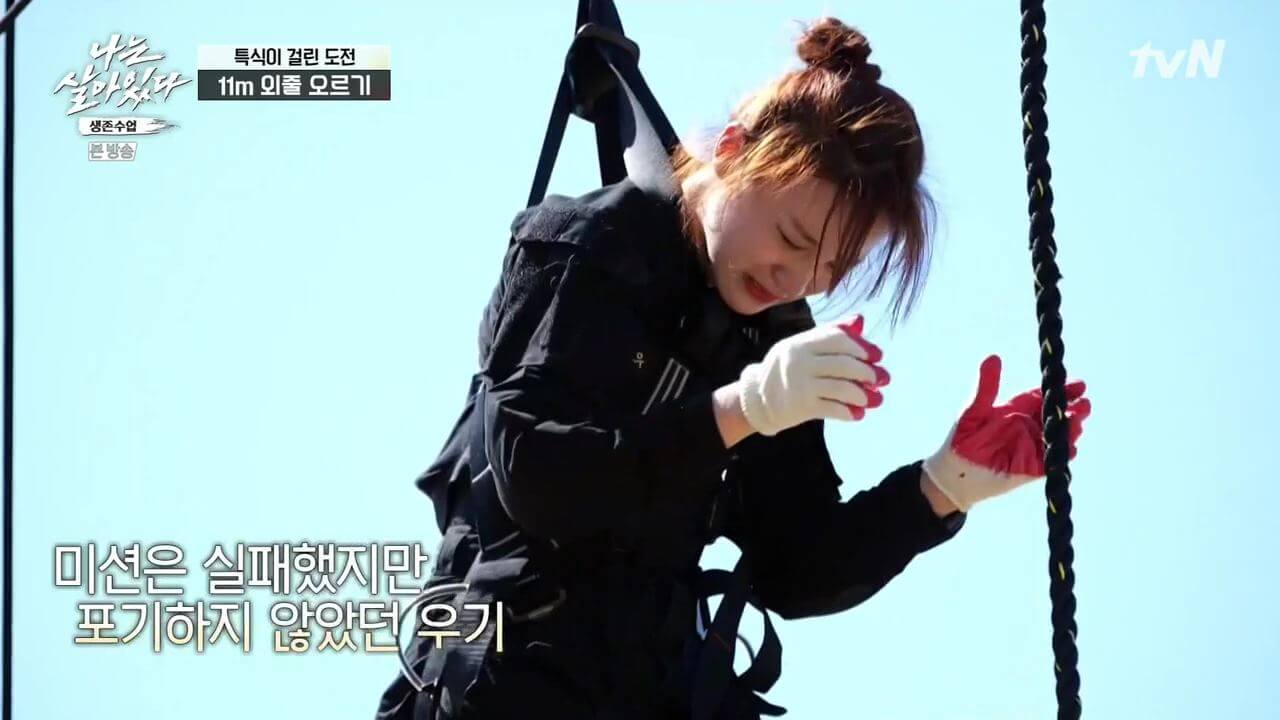 처음은 에이스 이시영부터 시작했습니다. 하지만 그간에 피로가 몸에 누적됐던 탓일까요? 쉽게 몸을 움직이지 못하고 "나 못 해"라며 포기를 했습니다. 아침부터 어깨의 상태가 안좋았던것이였습니다. 이시영은 "생존이 걸린 훈련이라 아픈지 모르고 계속 해, 쌓이다가 잘 못된 것 같다", "막상 진짜 필요한 순간 아무 것도 못하는 제 자신이 너무 싫더라"며 속상한 마음을 말했습니다...