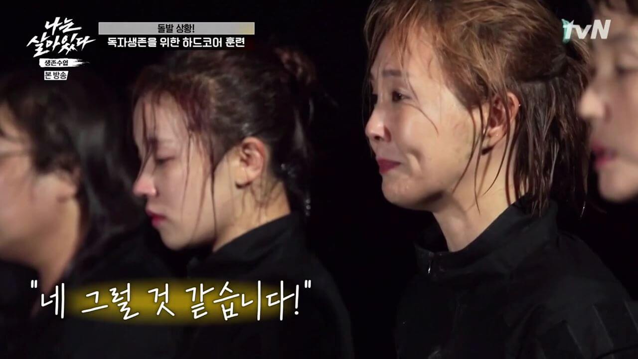 평소에 운동을 즐겨하는 이시영 조차 힘들어했습니다. 우기는 "그때 정말 리얼이었다. 눈물이 나올 뻔했다"고 호소했습니다. 훈련 도중 정말 울었던 우기에게 교관은 "운다고 해결되지 않는다"며 동료와 함께 버티는 단결력을 강조했습니다.