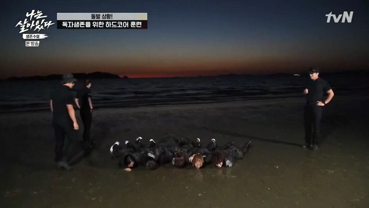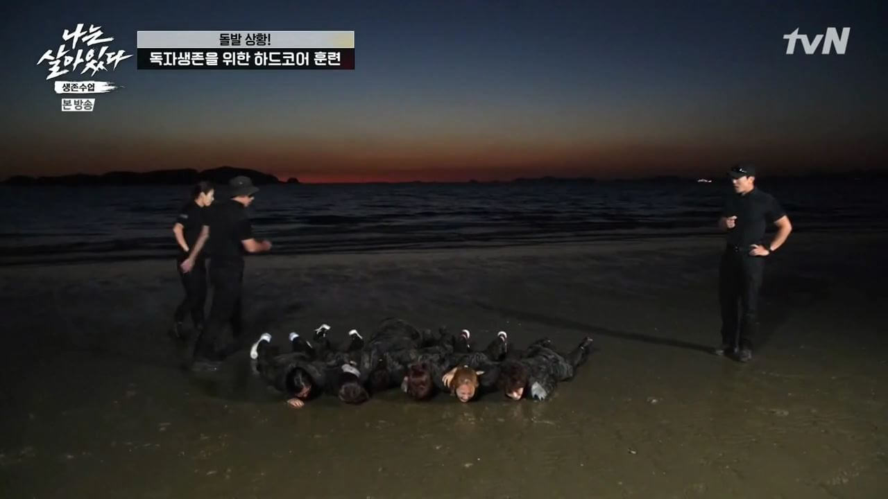 독자생존 전.... '재난은 예치기 않은 순간 찾아온다'는 의미에서 시작된 "마지막 담금질"훈련이 시작된 것이였습니다. 박은하 교관, 이창준 교관, 박수민 교관이 바닷가로 교육생들을 데려가더니 체력 및 정신 단련 훈련이 시작됐습니다. 바닷가에서는 체감온도 영하 5도였습니다. 거기다가 옷도 젖었지요.